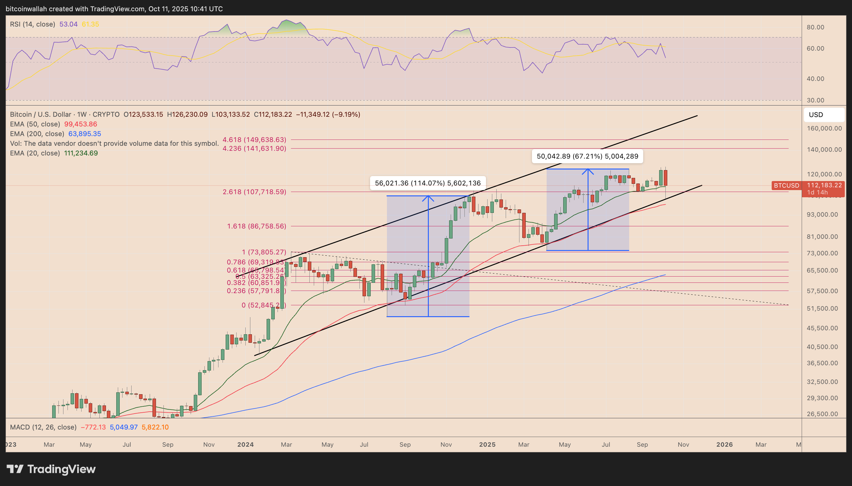 Bitcoin’s Friday correction could be a mid-cycle cooldown rather than the start of a long bear market, according to chartist The Great Mattsby.