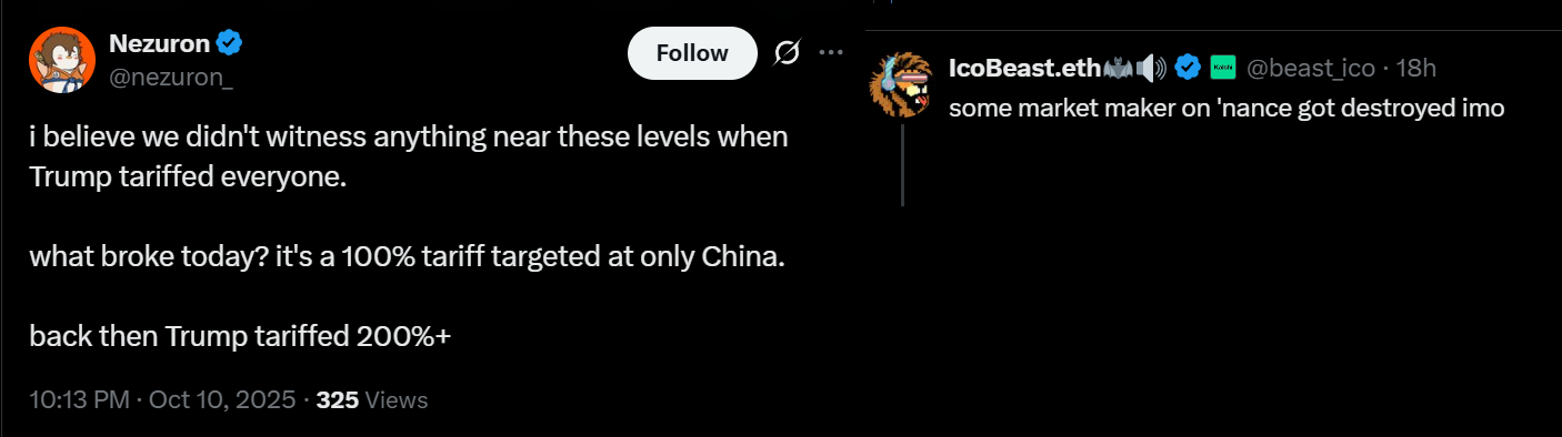 In essence, even traders sitting on significant gains saw some positions unilaterally terminated, creating major problems for those using portfolio margin rather than isolated risk management. This situation is not necessarily the fault of exchanges or evidence of malpractice; it is a byproduct of using leverage in relatively illiquid markets. Some altcoins plunged 40% or more, triggering a collapse in traders’ collateral deposits.