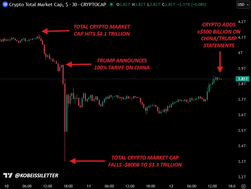 Crypto, in turn, added more than half a billion dollars to its market cap after Friday’s lows. Given that some short traders had timed the market a little too well, co-founder Adam Kobeissi described the comeback as “game over.”