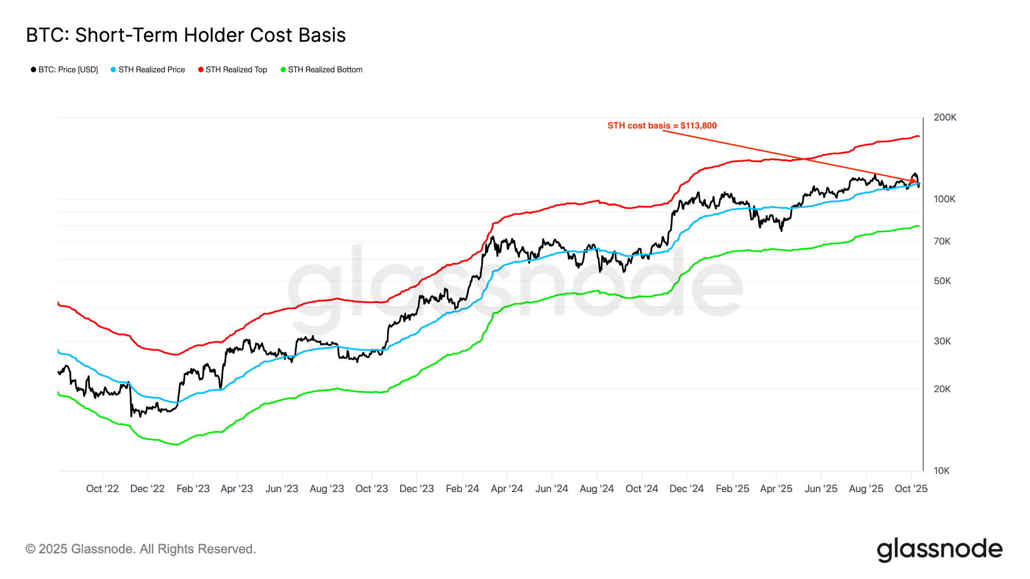 STH cost basis, or realized price, represents the average acquisition price of BTC for investors who have held Bitcoin for less than 155 days.