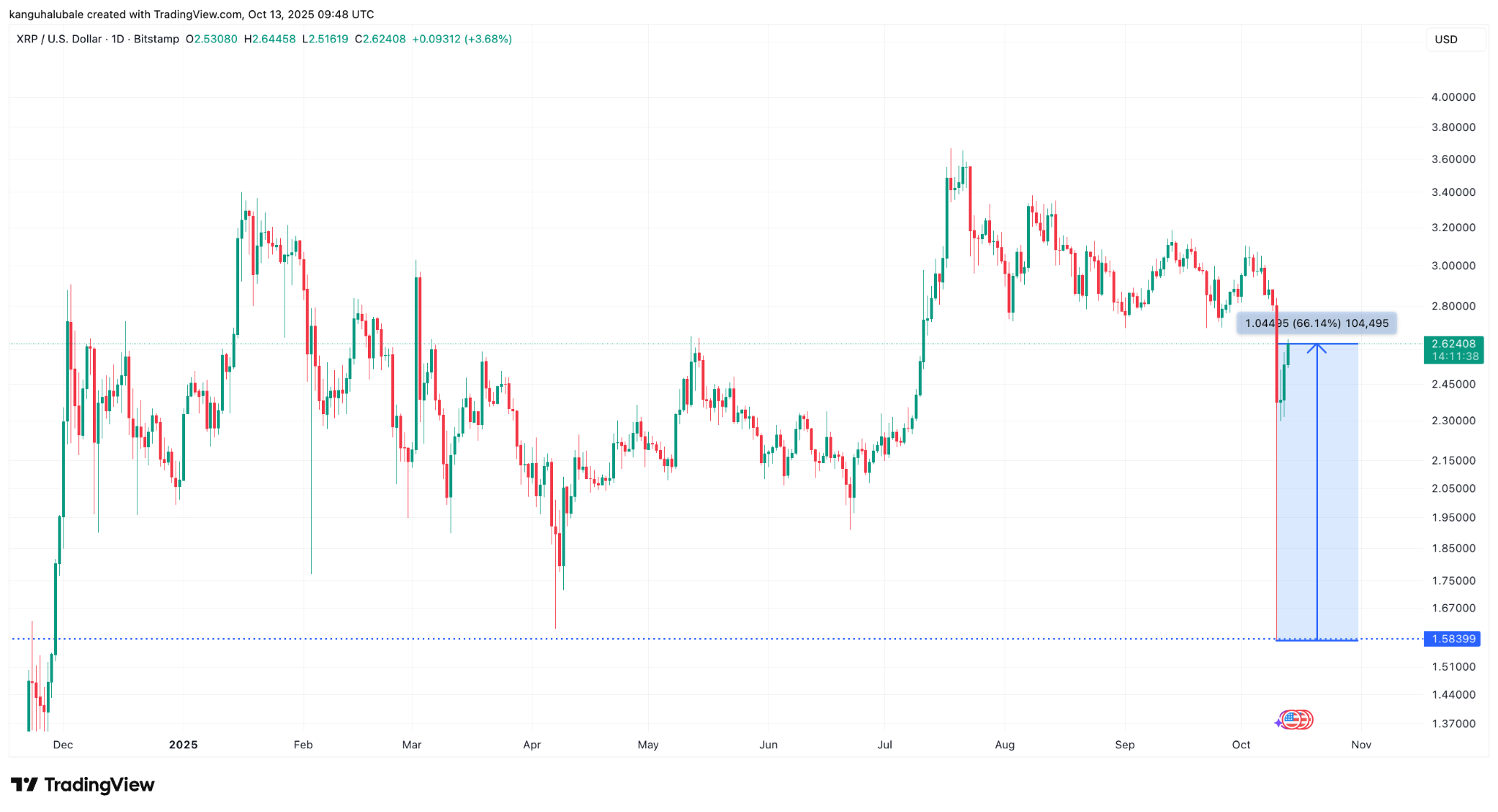 XRP Rises to $2.60, Paring Most Losses From Flash Crash: Is the Worst Over?