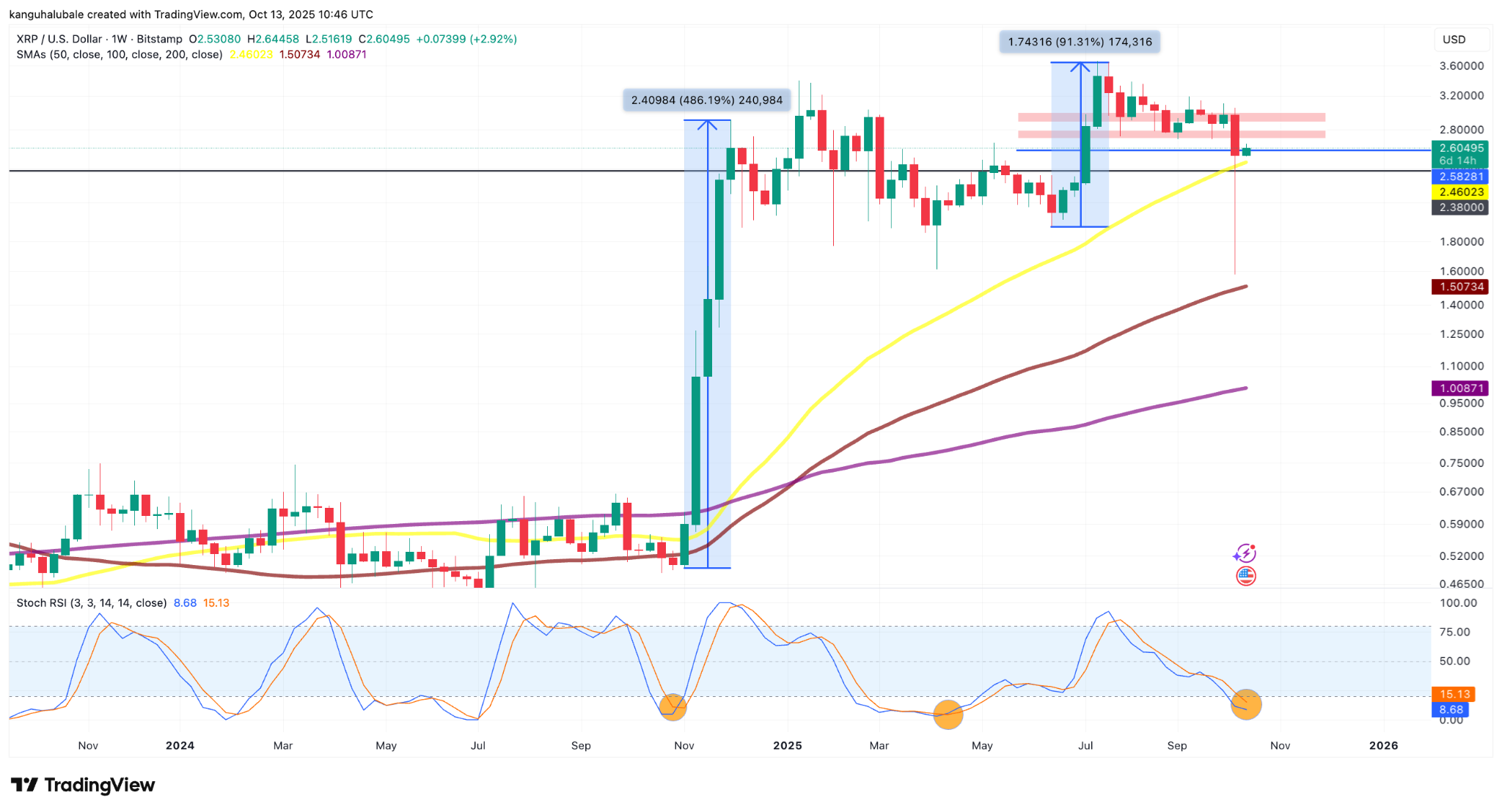 “XRP’s weekly Stoch RSI has revisited oversold levels, hinting a strong bullish reversal is on the cards,” said analyst Chart Nerd in a Friday X post, adding: