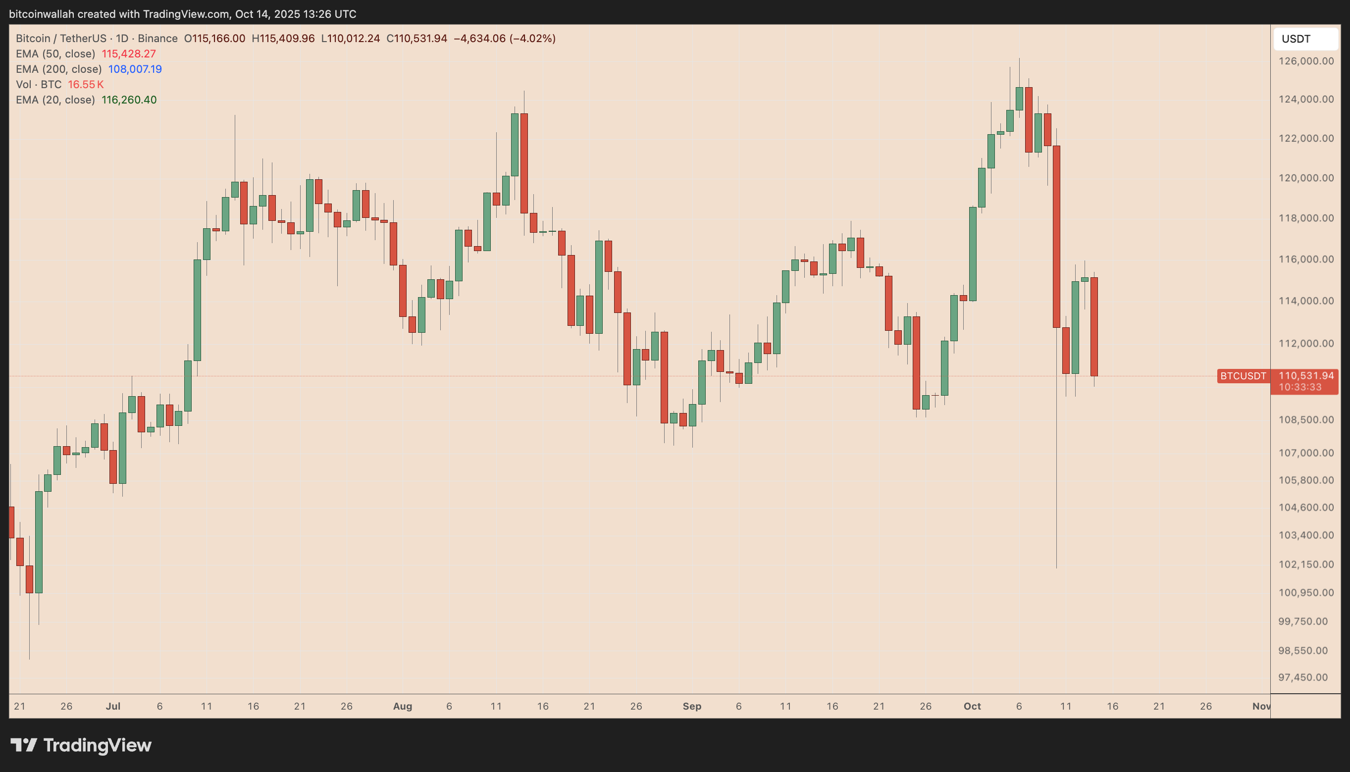 Let’s examine how low BTC could go if the $110,000 support fails.