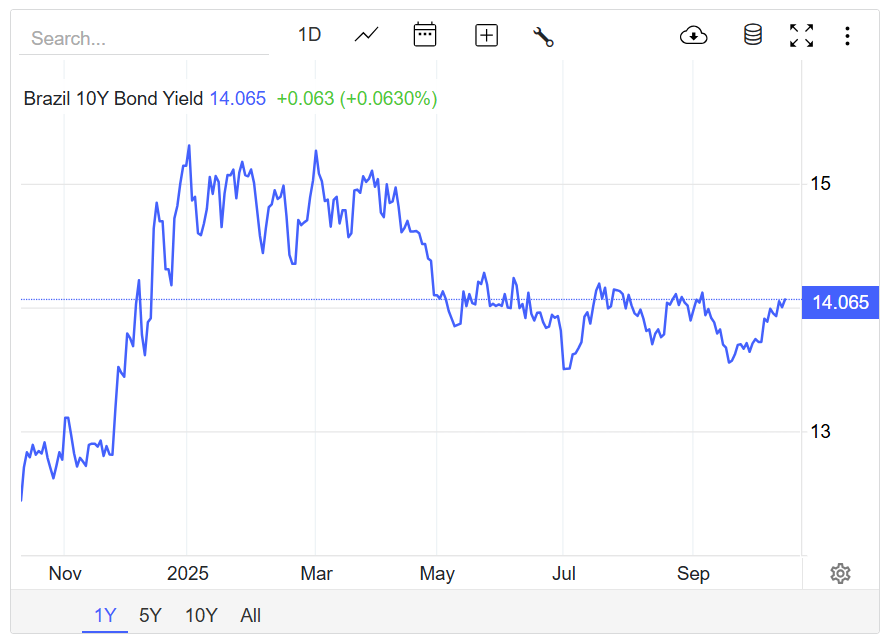 According to TradingEconomics, the 10-year Brazilian government bond yield is about 14%, after recently peaking near 15.2%. That has made Brazil one of the most attractive sovereign bond markets globally, though foreign investors often face bureaucracy, complex tax rules and currency-conversion hurdles when trying to invest directly.