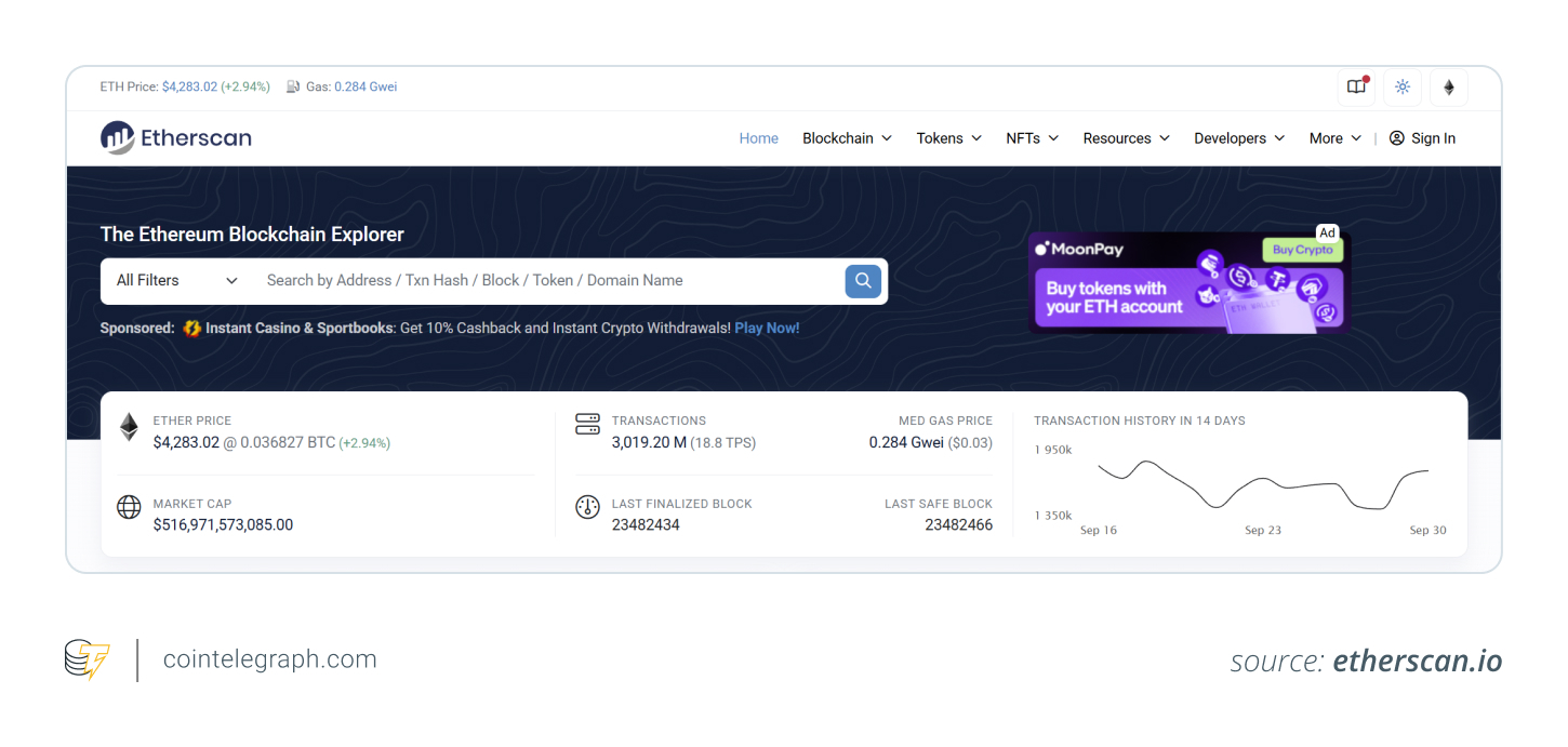 Anyone using Ether (ETH) or ERC-20 tokens benefits from a reliable block explorer. These tools make it easier to verify decentralized finance (DeFi) transactions, follow non-fungible token (NFT) mints and inspect smart contract activity, offering a transparent view of what’s happening on the Ethereum network.