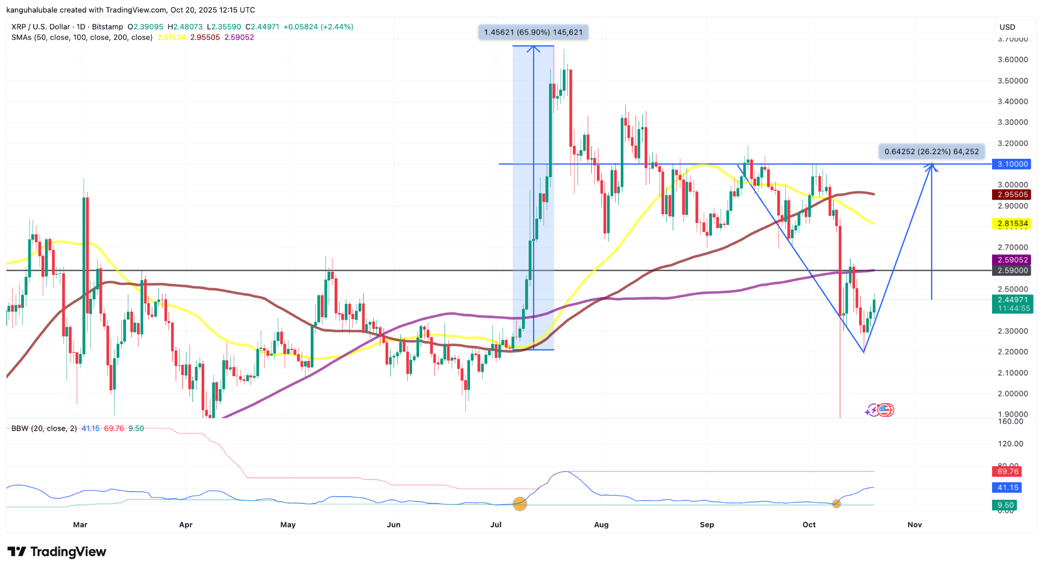 XRP’s price action has been following a potential V-shaped recovery chart pattern on the daily time frame since mid-September, as shown below.