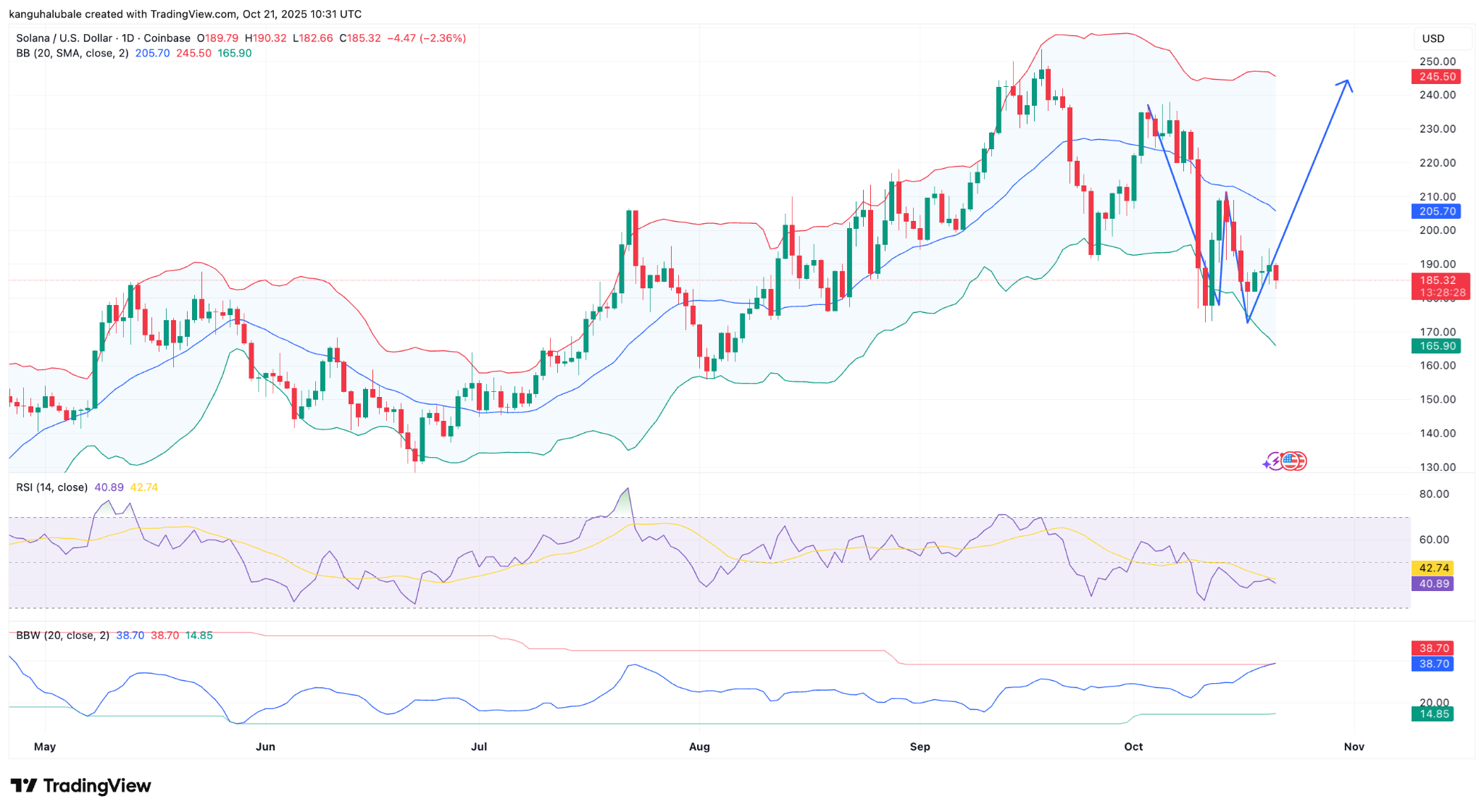 Solana’s double-bottom below $180 signals potential price recovery to $250.