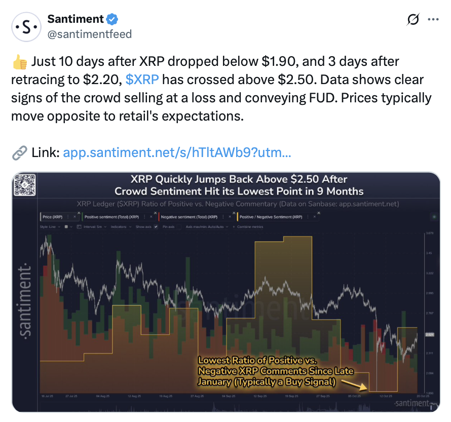 Retail traders went into full-blown panic mode after US President Donald Trump announced a 100% tariff on Chinese imports on Oct. 10, according to sentiment platform Santiment.