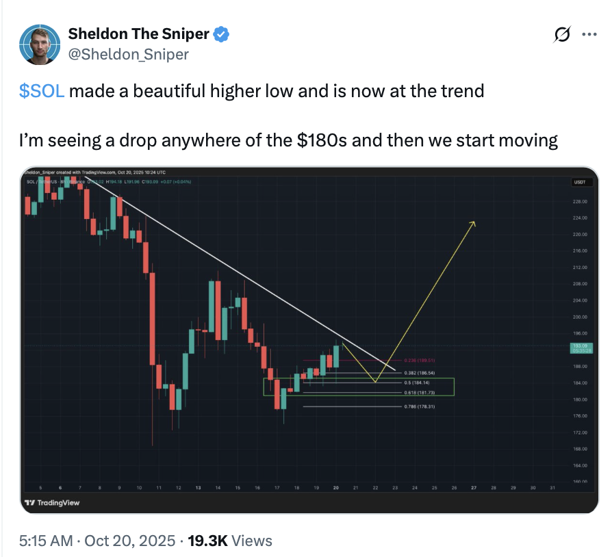 Solana is trading at $189.87 at the time of publication, according to CoinMarketCap.