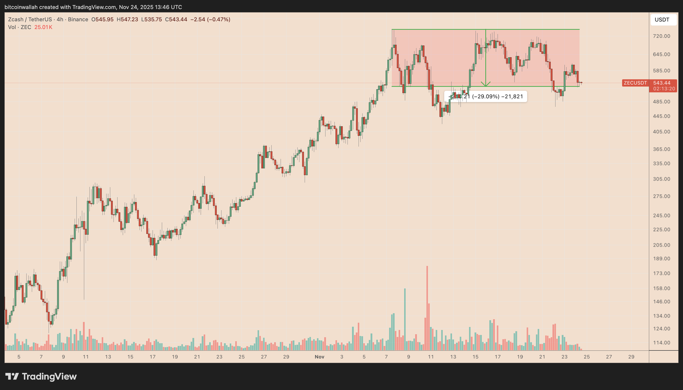 Zcash (ZEC) has dropped about 30% from its November peak of $750, raising fears of deeper losses ahead, with some analysts warning of a potential “pump-and-dump.”