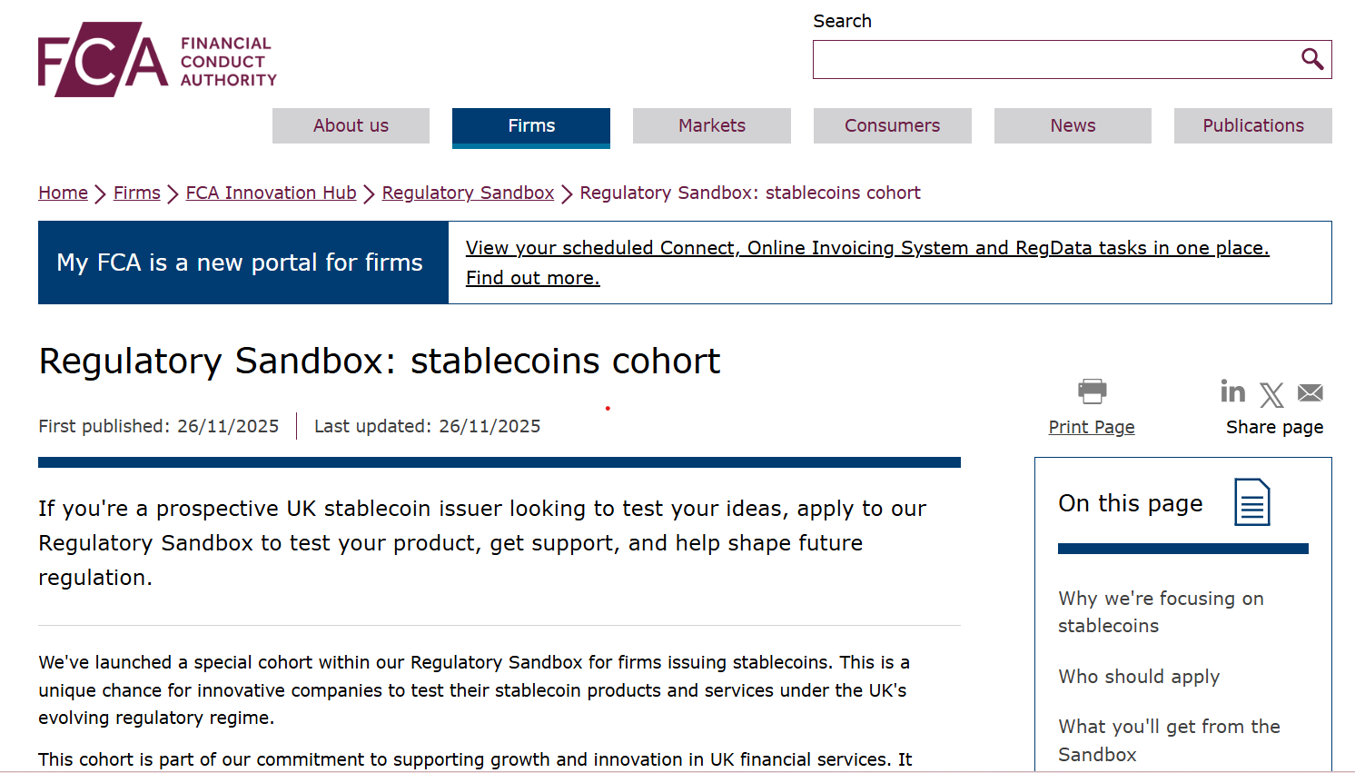 FCA Fast Tracks UK Pound Stablecoin Sandbox Ahead of 2026 Rules