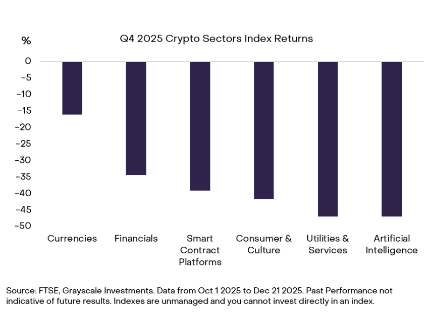 While the Currencies subsector declined more than 15% during the quarter, it still significantly outperformed other segments, including financials, smart contract platforms, consumer and culture, and artificial intelligence.
