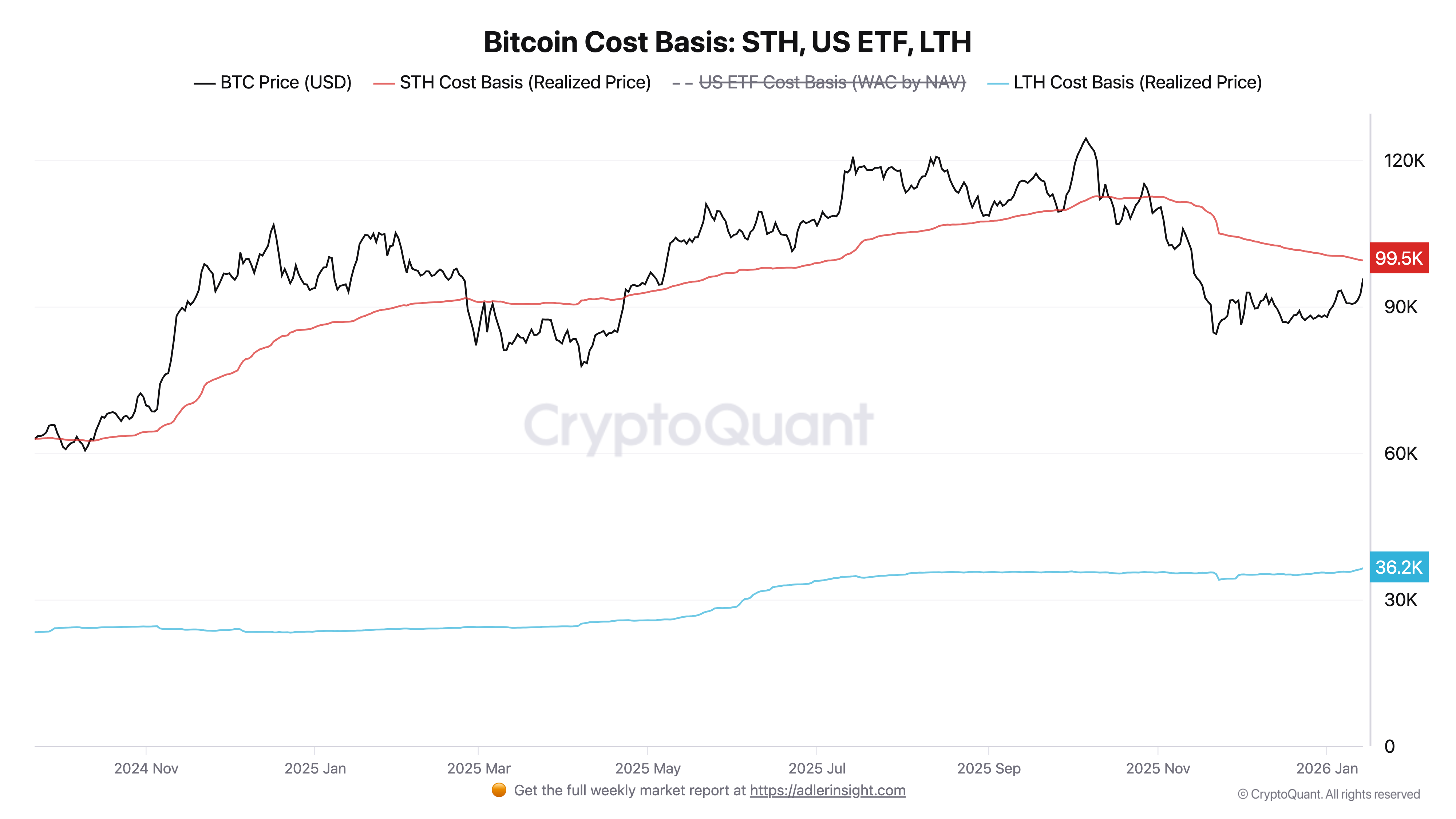 Separate data from CryptoQuant contributor Axel Adler Jr. put the aggregate cost basis for the STH cohort at $99,600, reinforcing that area as a potential future resistance point.
