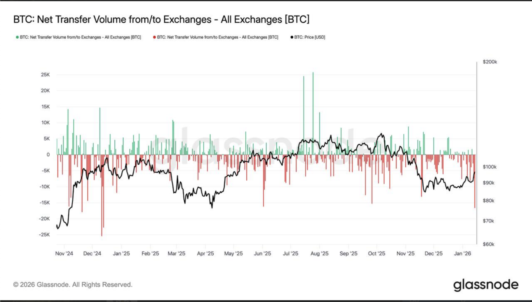 BTC net transfer volume from/to exchanges. Source: Glassnode