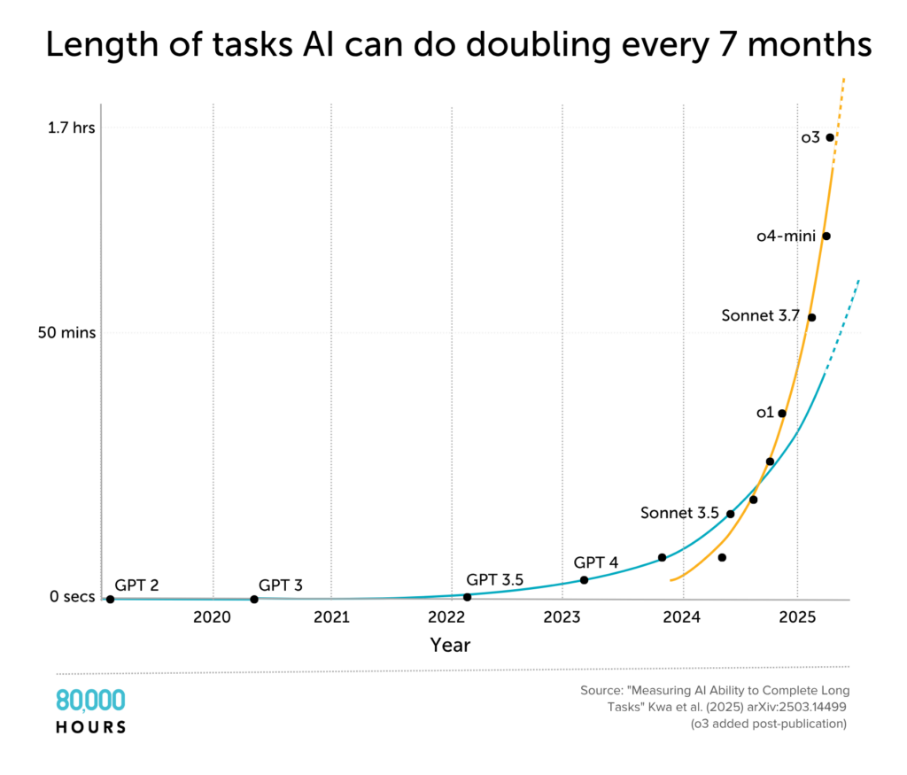 It’s clear why progress on this metric matters — an AI system that can do a 10-minute software engineering task may be somewhat useful; if it can do a two-hour task, even better. If it could do a task that typically takes a human several weeks or months, it could significantly contribute to commercial software engineering work.