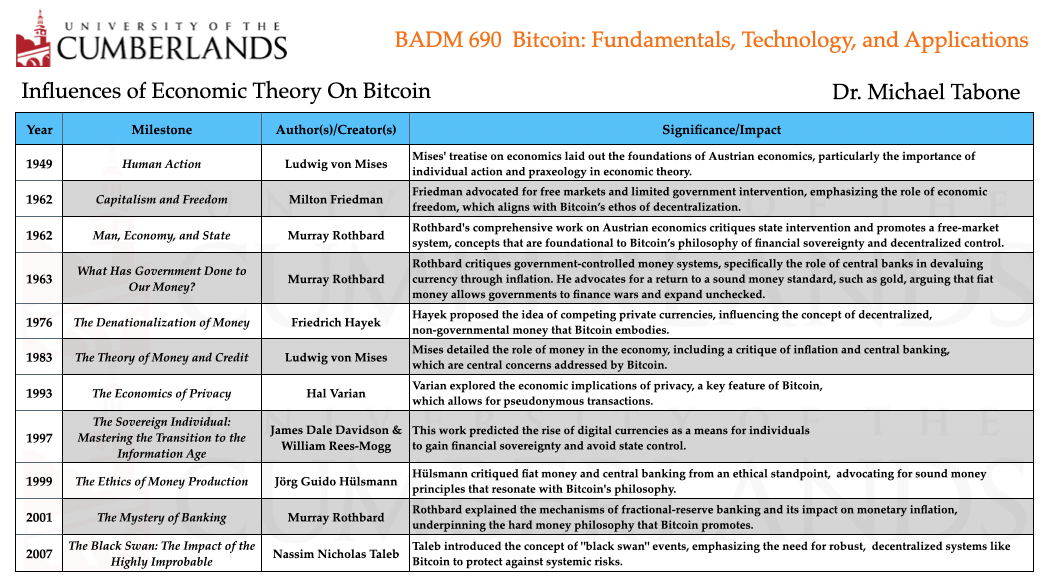 This graduate course grappled with Rothbard’s monetary theory, Mises’ critiques and technology overviews from classic Bitcoin works. It asked not whether Bitcoin matters but how much it matters — and how it reshapes money, markets and management.