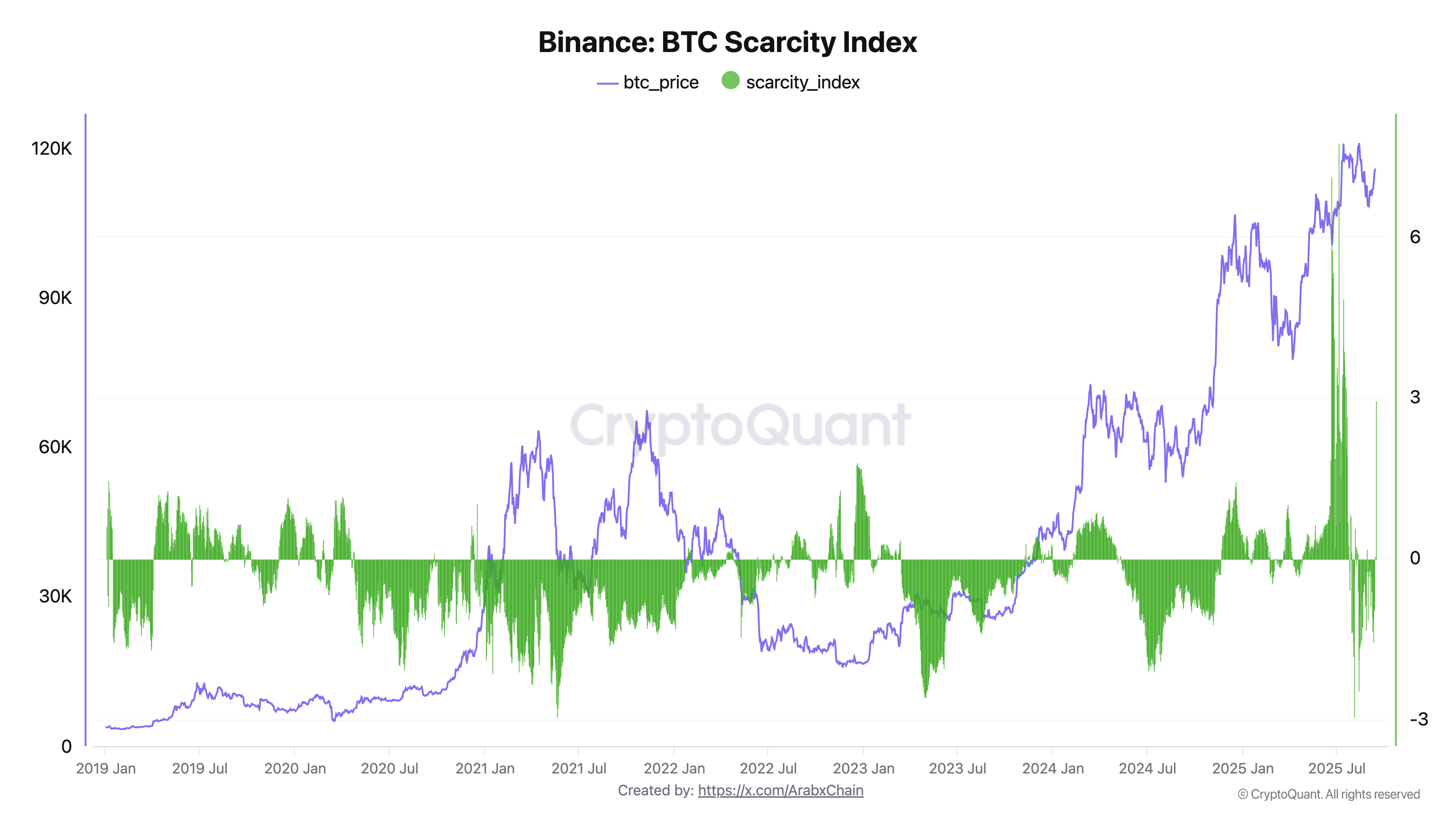 The latest research from onchain analytics platform CryptoQuant concludes that a large buyer may have been active on Binance this weekend. Contributor Arab Chain flagged the Binance Scarcity Index tool as proof.