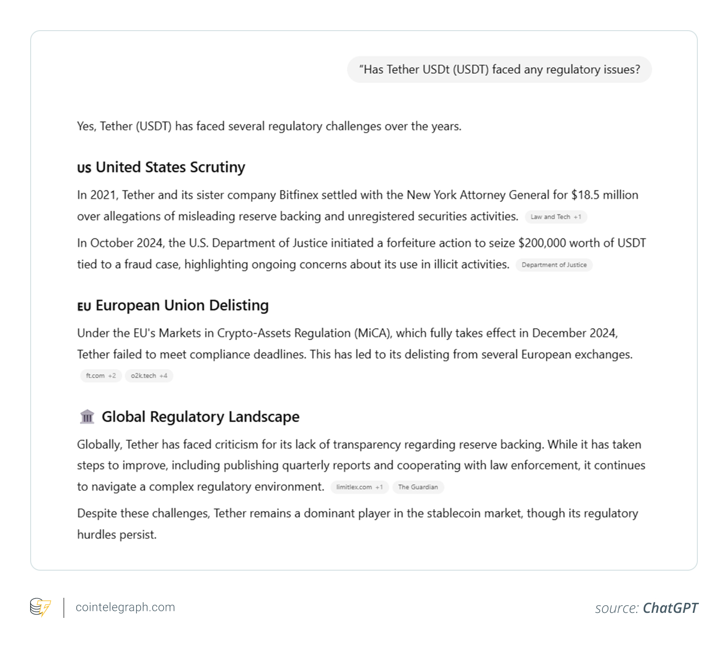 “Has Tether USDt (USDT) faced any regulatory issues?”