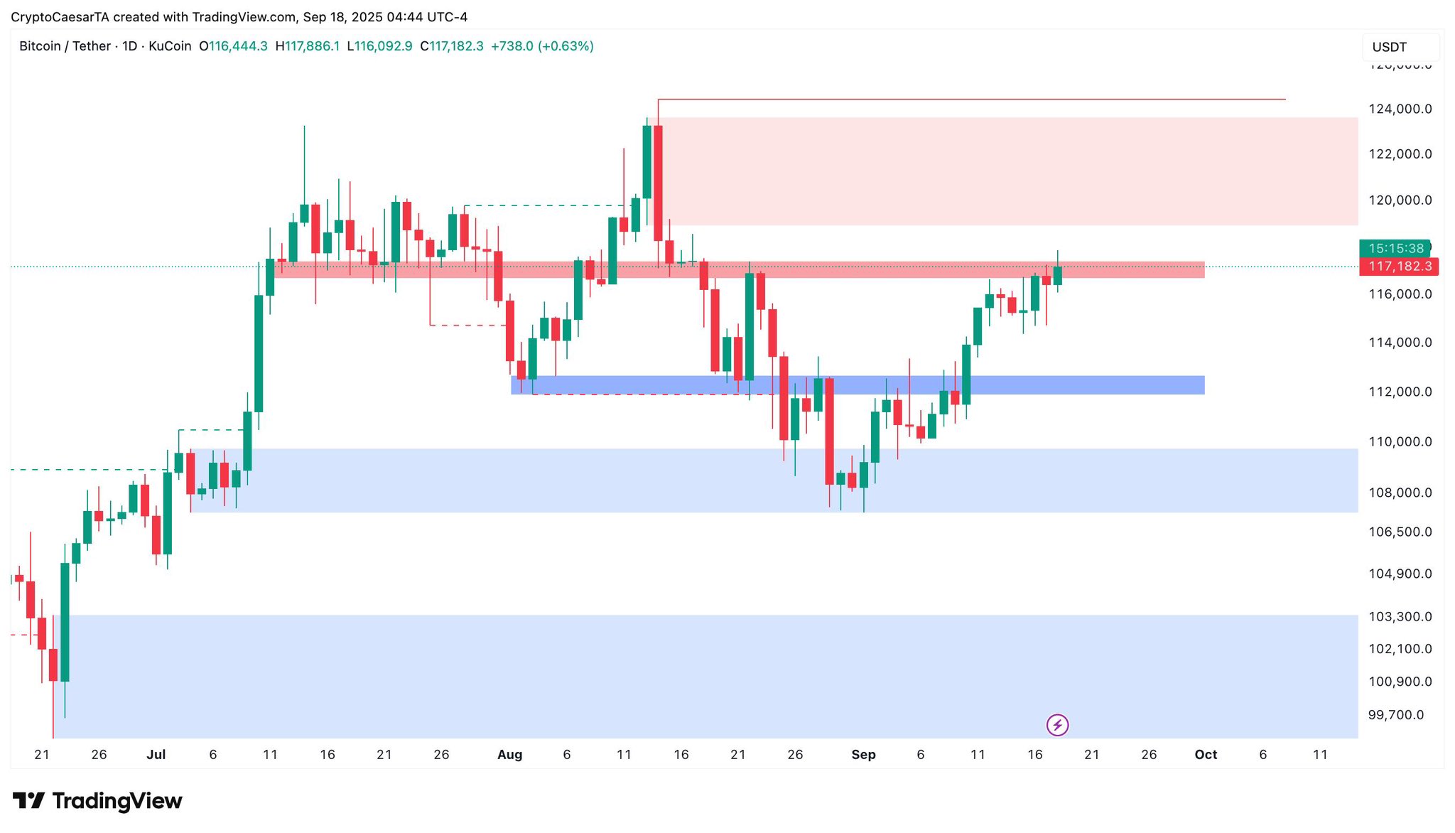 BTC/USDT one-day chart. Source: Crypto Caesar/X