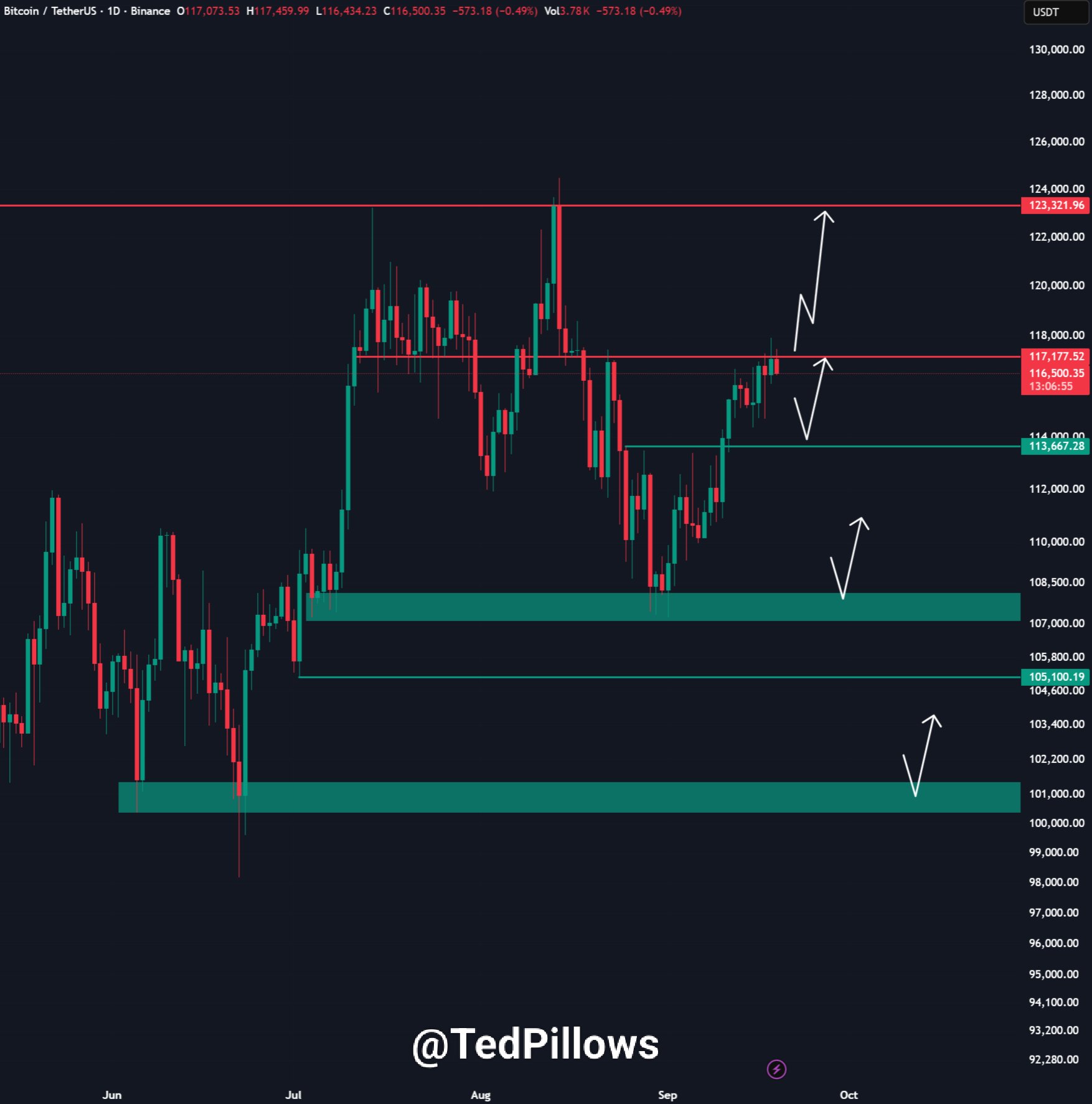 BTC/USDT one-day chart. Source: Ted PIllows/X