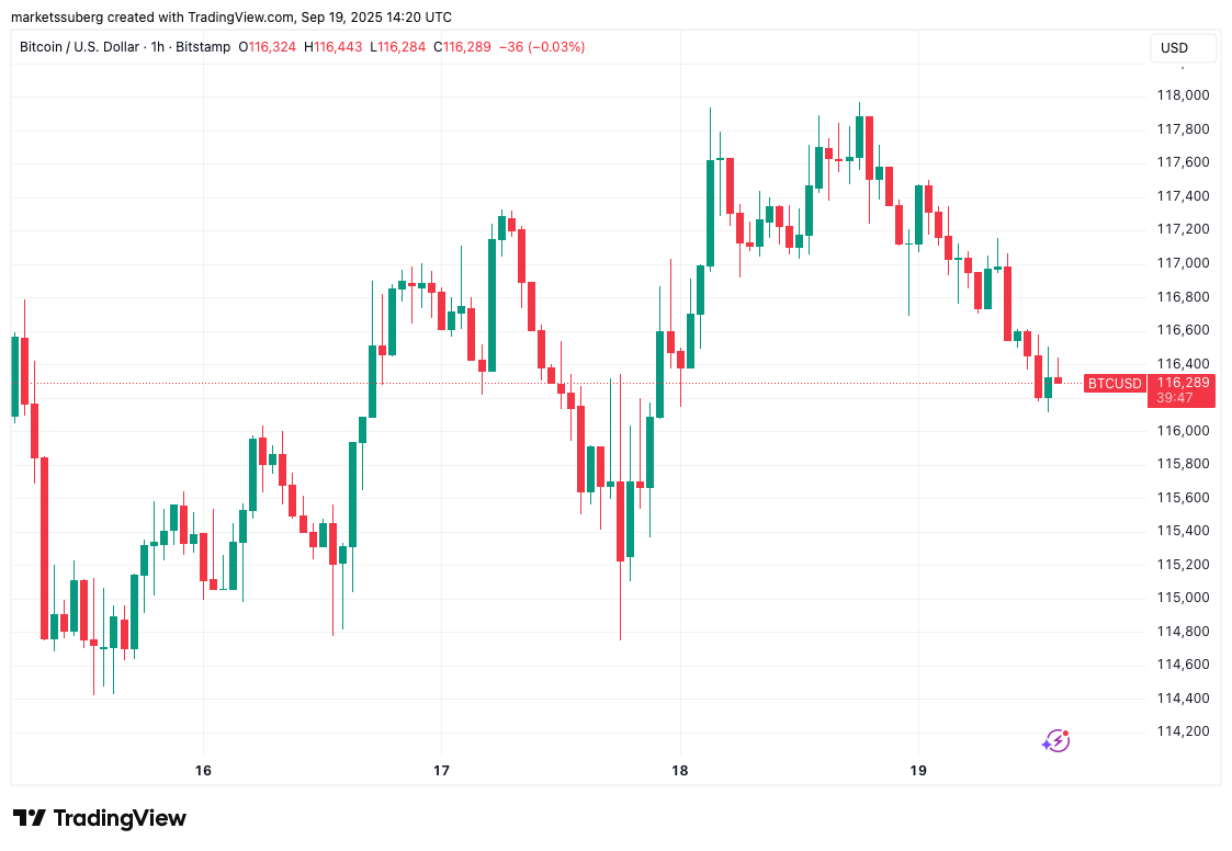 Data from Cointelegraph Markets Pro and TradingView showed that BTC/USD narrowly avoided a daily close above $117,200.