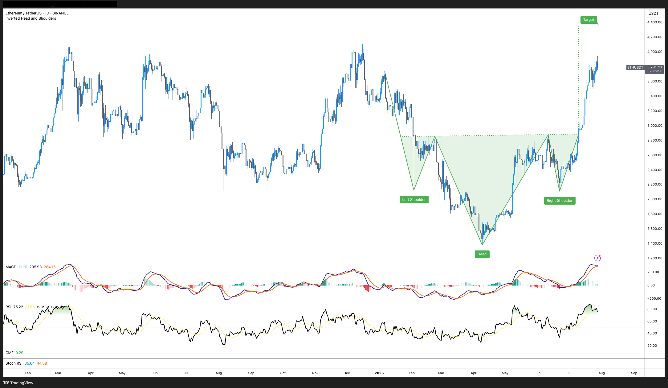 Some traders, including independent market analyst Michael Van de Poppe, believe that “liquidity on the longside [is] ready to be taken,” suggesting a brief retrace to the $3,500 to $3,300 zone will occur before a rally through the $4,000 resistance.