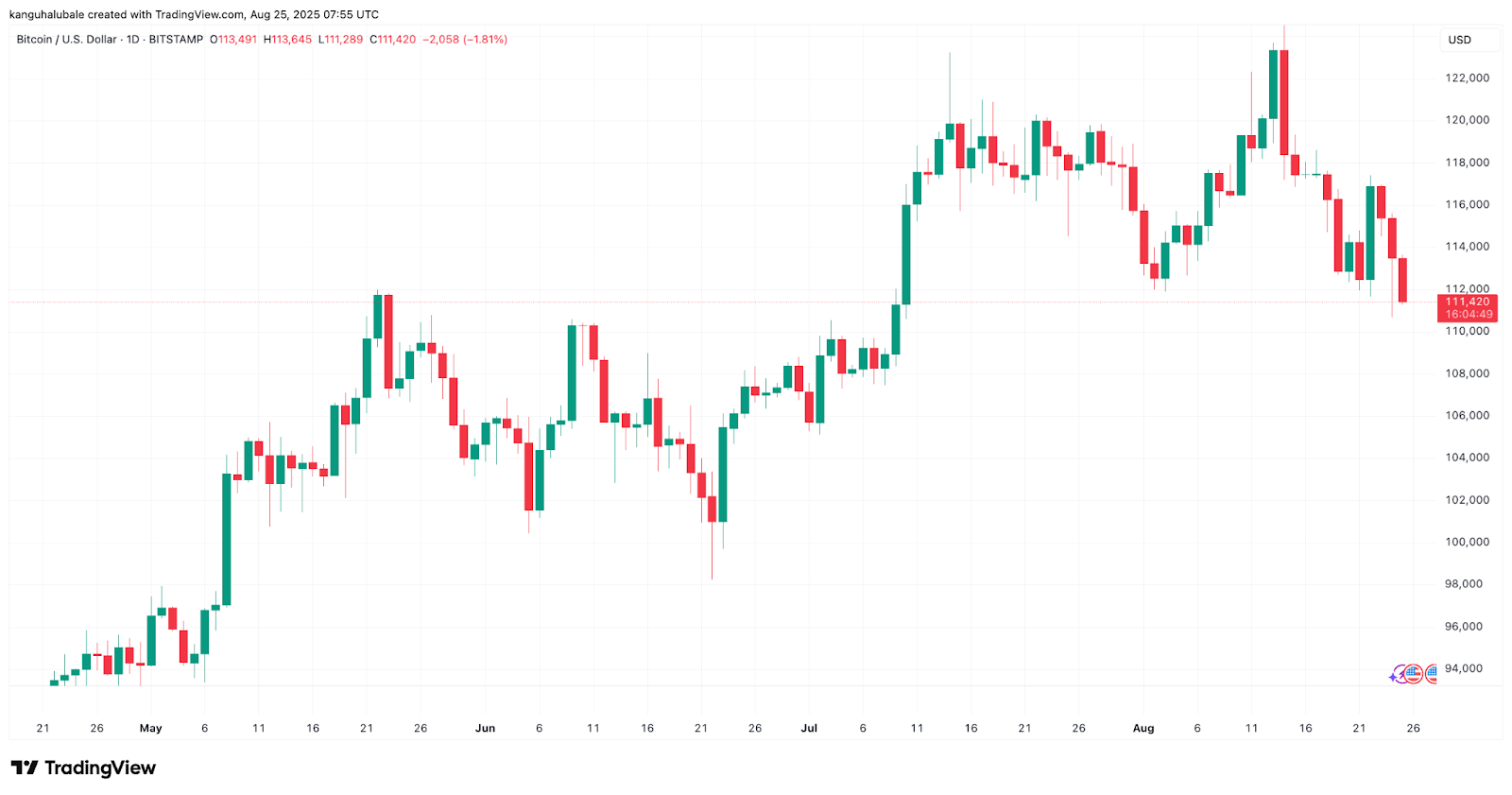 This extended the deviation from the Aug. 14 all-time high of $124,500 to 10% and was accompanied by massive liquidations across the derivatives market.