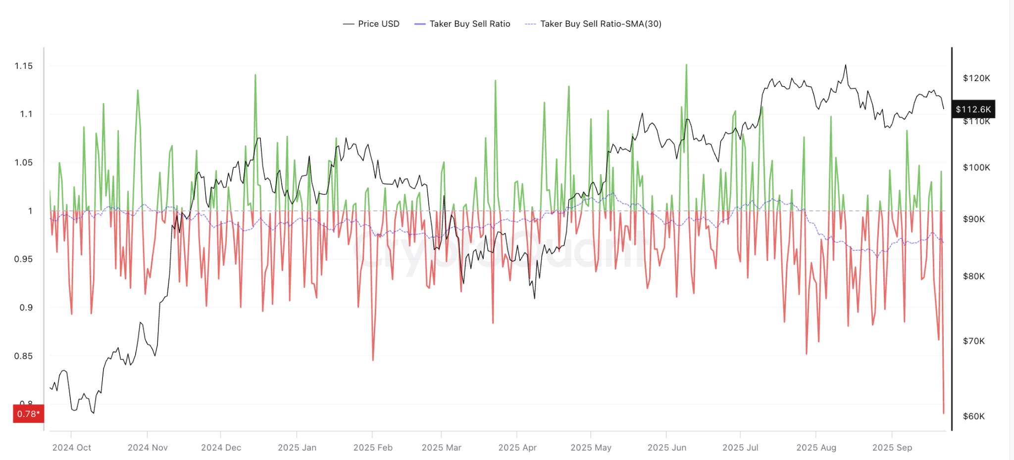The taker buy/sell ratio reinforces that the market is in a critical zone, as growing selling pressure exposes weaknesses in Bitcoin’s price structure.