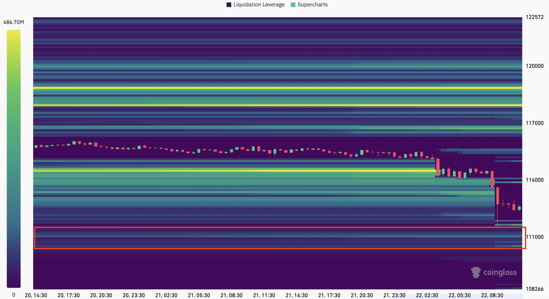 The Bitcoin liquidation heatmap showed the price eating away liquidity around $112,000, with more than $400 million bid orders between $111,500 and $110,000.
