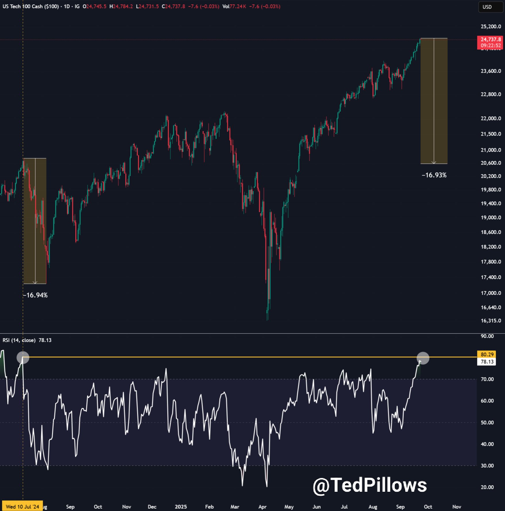 “$NASDAQ daily RSI has reached 78, its highest level since July 2024,” he observed