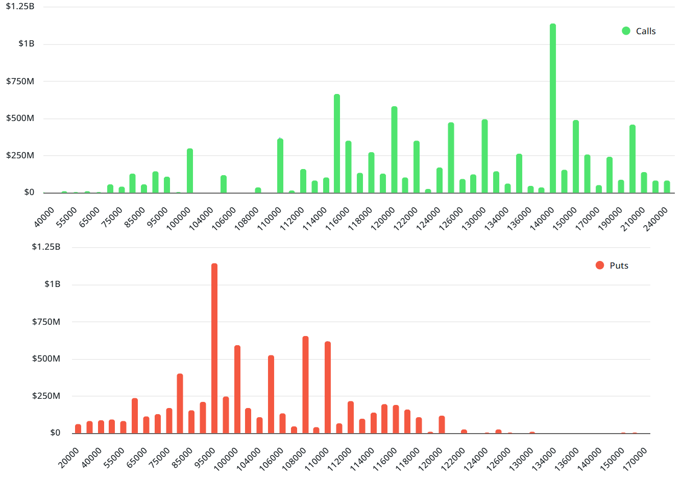 Traders’ positioning at Deribit exchange shows that neutral-to-bearish bets targeted the $95,000 to $110,000 range, which is becoming increasingly unlikely. A significant portion of call contracts were placed at highly optimistic levels, with $6.6 billion in open interest waiting at $120,000 and above, leaving around $3.3 billion realistically in play.