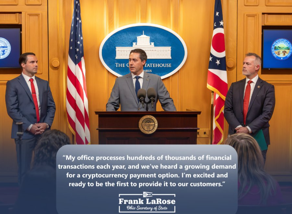 In April, LaRose and Ohio Treasurer Robert Sprague called on the board to authorize cryptocurrency payments, seeking to give state agencies the authority to accept crypto through a payment processor designated by the Treasurer’s office.