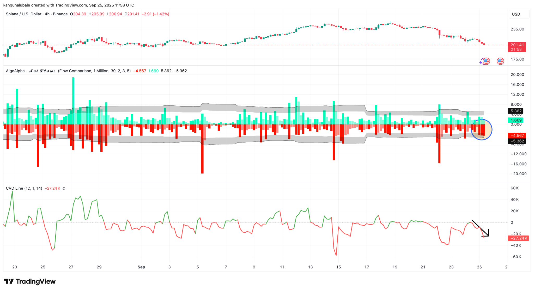 In addition, data from DefiLlama shows weakening network metrics, such as a 16% decrease in the total value locked in Solana DeFi protocols and an 11% decrease in daily transactions over the last seven days.