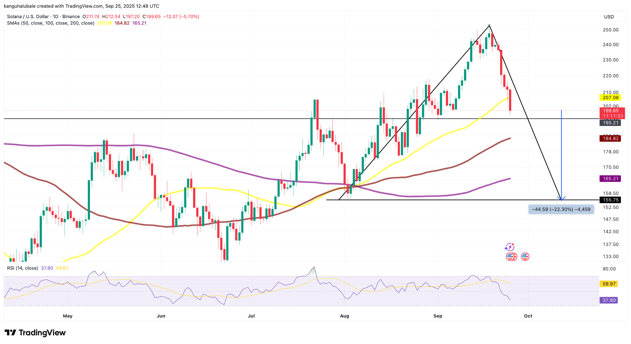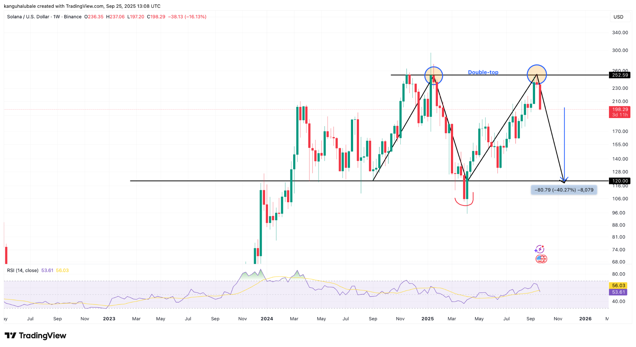 The drop puts SOL/USD on track for its lowest weekly candle close since late August, fueling speculation over a push toward the $120 level.
