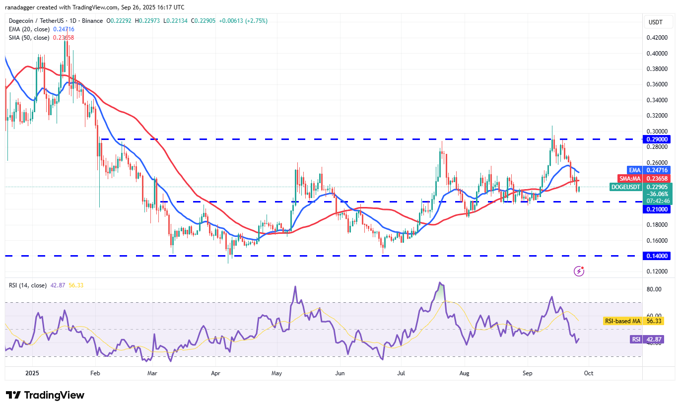 The failure of the bulls to push Dogecoin (DOGE) above the 20-day EMA ($0.24) on Wednesday signals that the bears are selling on rallies.