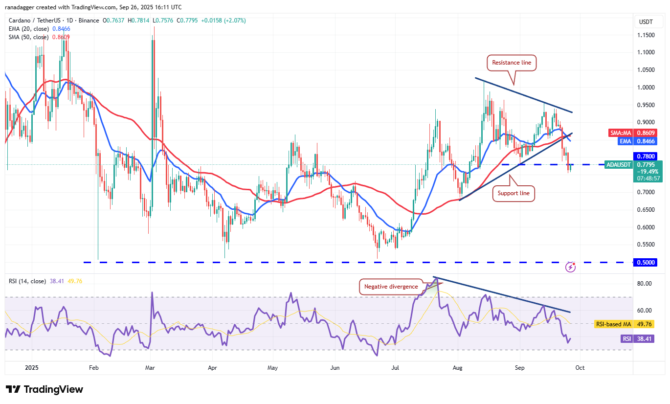 Cardano (ADA) continued lower and slipped below the $0.78 support on Thursday, indicating that the bears have kept up the pressure.