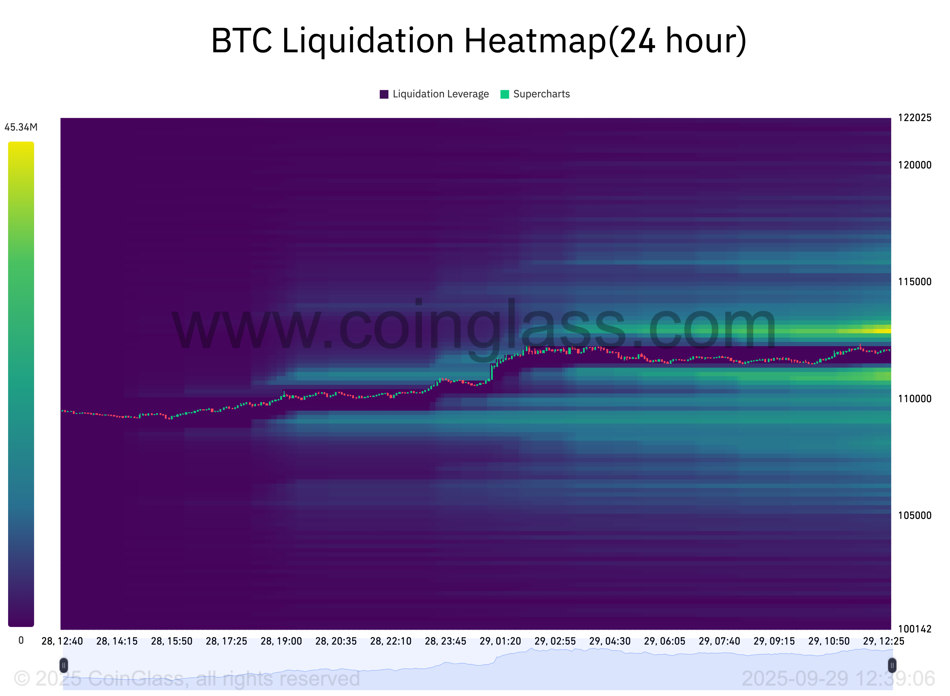 Data from CoinGlass shows that at $112,000, BTC/USD would lock in 3% September gains, with Q3 upside at around 4.4%.