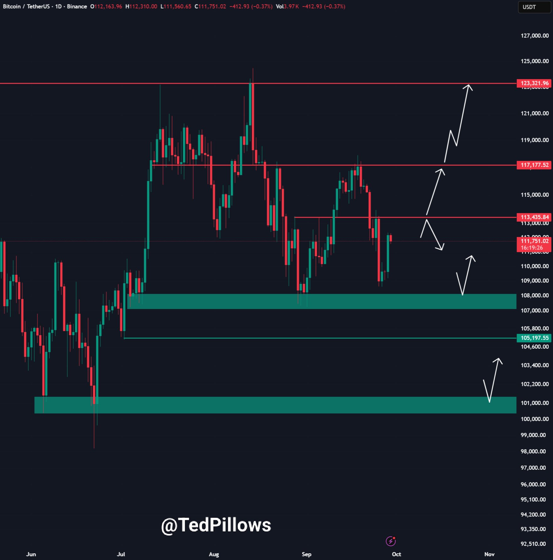 “For a strong Bitcoin rally, a daily close above $113,500 is needed. Otherwise, BTC will most likely revisit its lows again.”