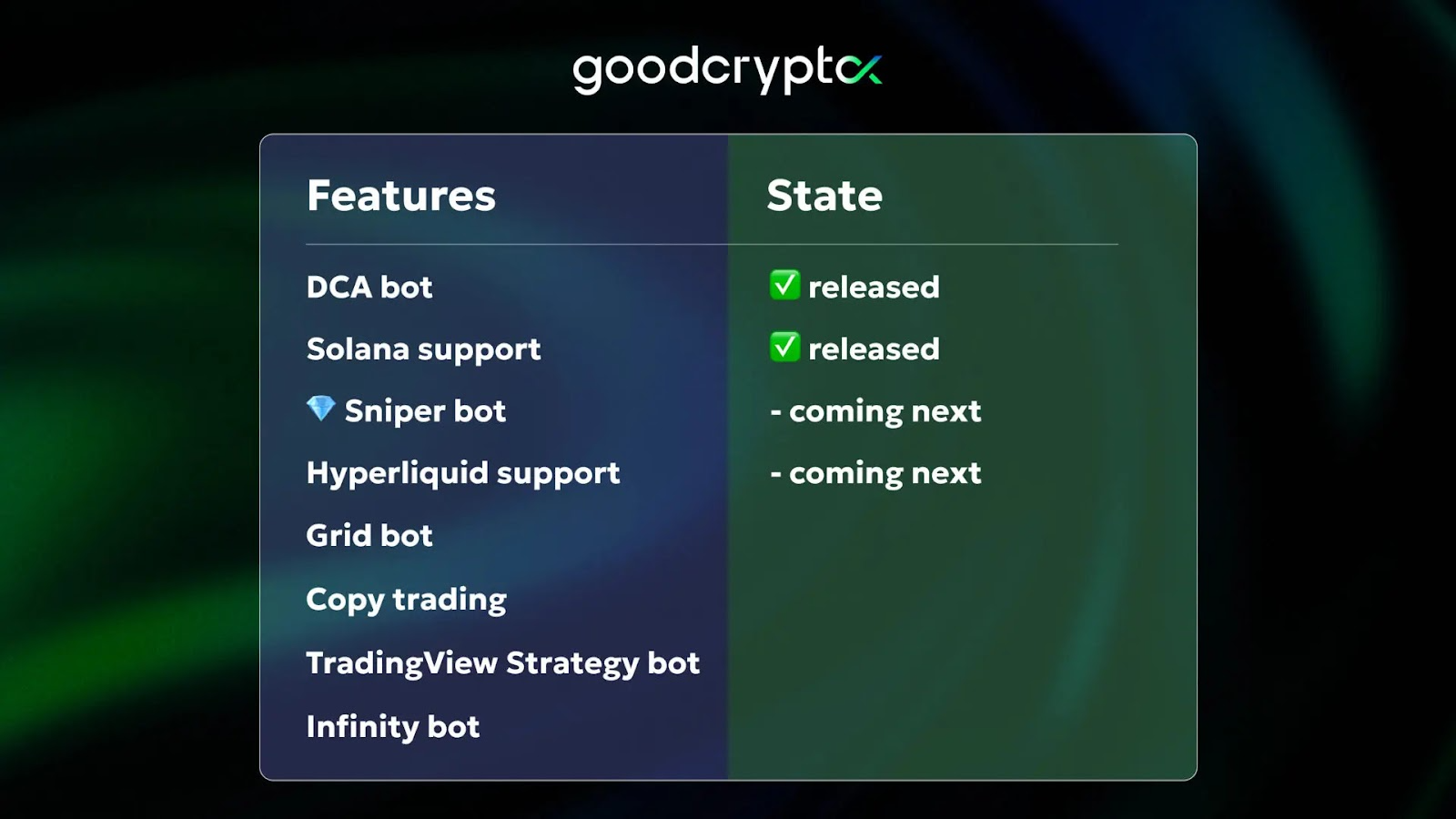 In addition, goodcryptoX is bringing CEX-grade algorithmic trading tools, such as a grid bot, DCA and a TradingView signals bot, to the DEX environment. The upcoming integration with perpetuals DEXs like Hyperliquid will be a major step in this direction, as it will be one of the first to offer these sophisticated automated strategies in that market.
