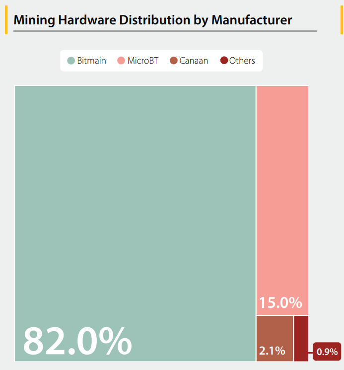 Together, the three companies control nearly the entire Bitcoin ASIC hardware market. A University of Cambridge study published in April found that Bitmain accounts for 82% of global Bitcoin ASIC production, with MicroBT and Canaan producing 15% and 2%, respectively.
