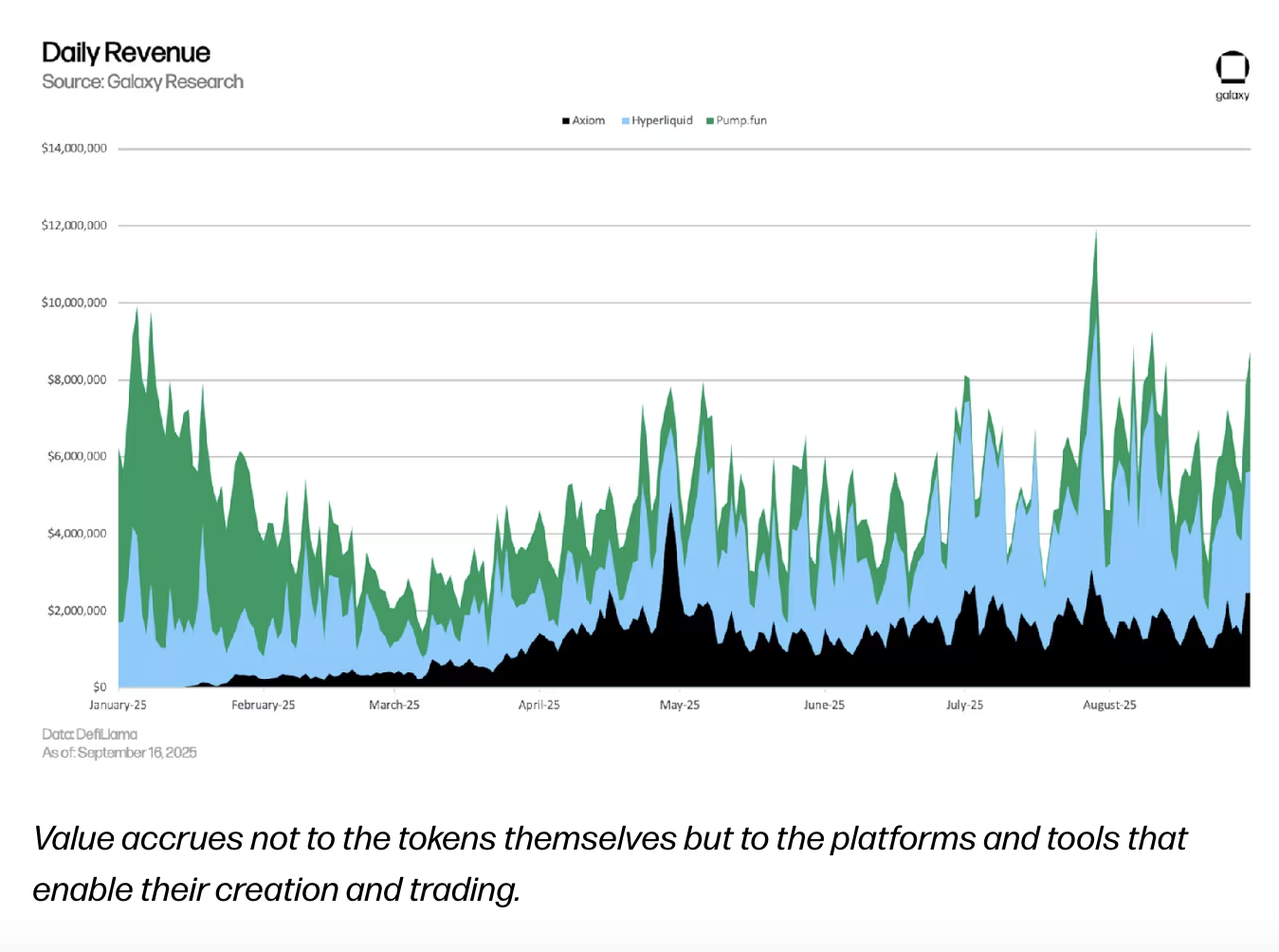 Memecoins may attract new users to blockchains, but the profits largely flow to the platforms that launch and trade the tokens, according to a new report from Galaxy Research.