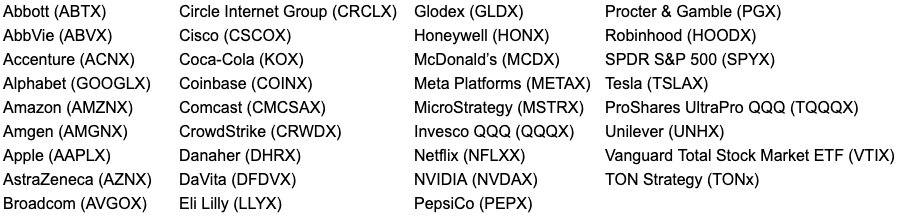 The initial rollout will feature 35 tokenized stocks, including Circle (CRCLX), Coinbase (COINX), Robinhood (HOODX) and TON Strategy (TONx).