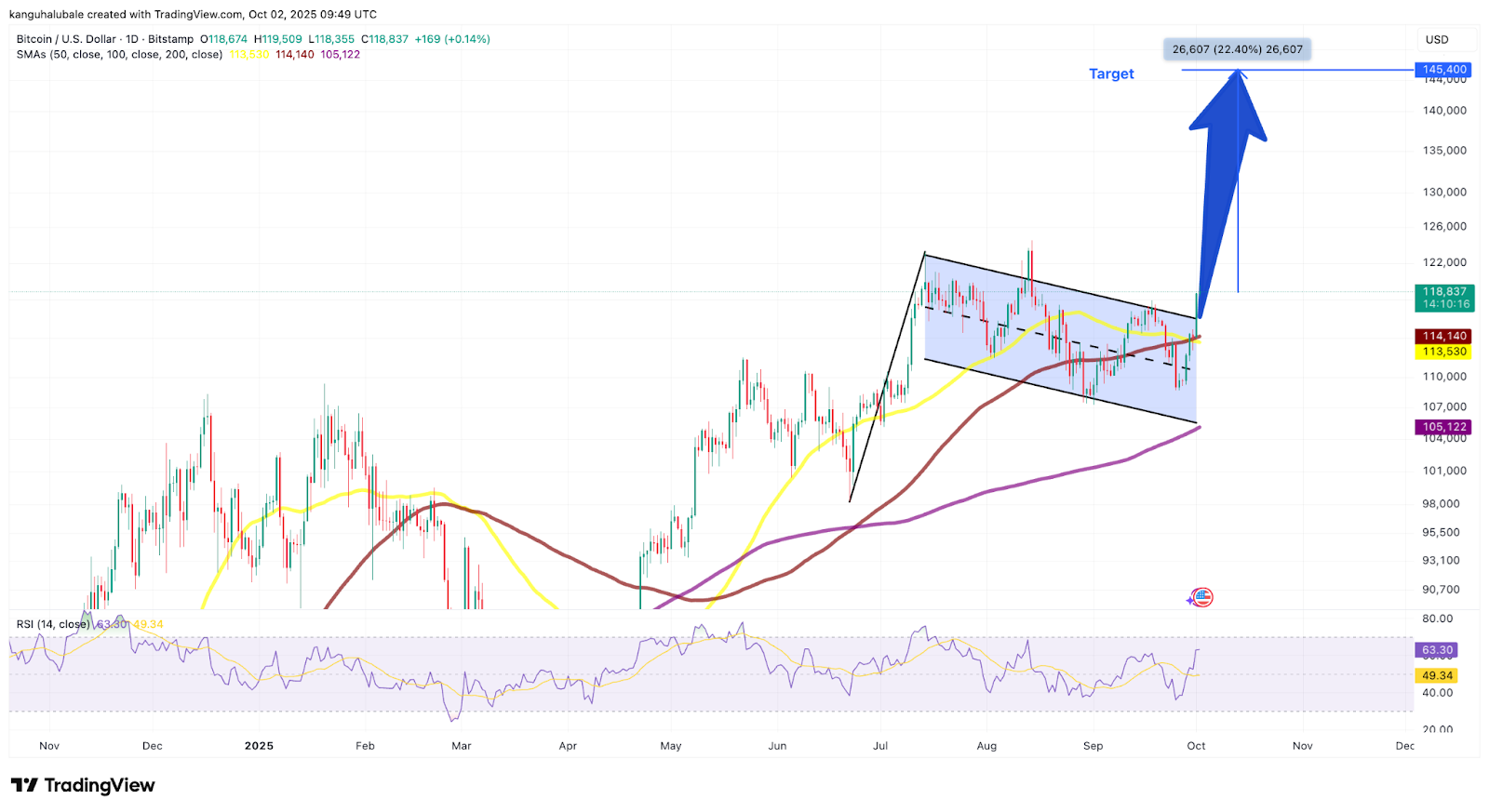 Bitcoin’s ‘Bull Flag’ Breakout Targets $145K in October