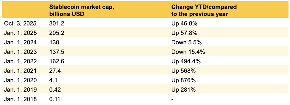 Stablecoins Break $300B Market Cap With 47% Growth YTD