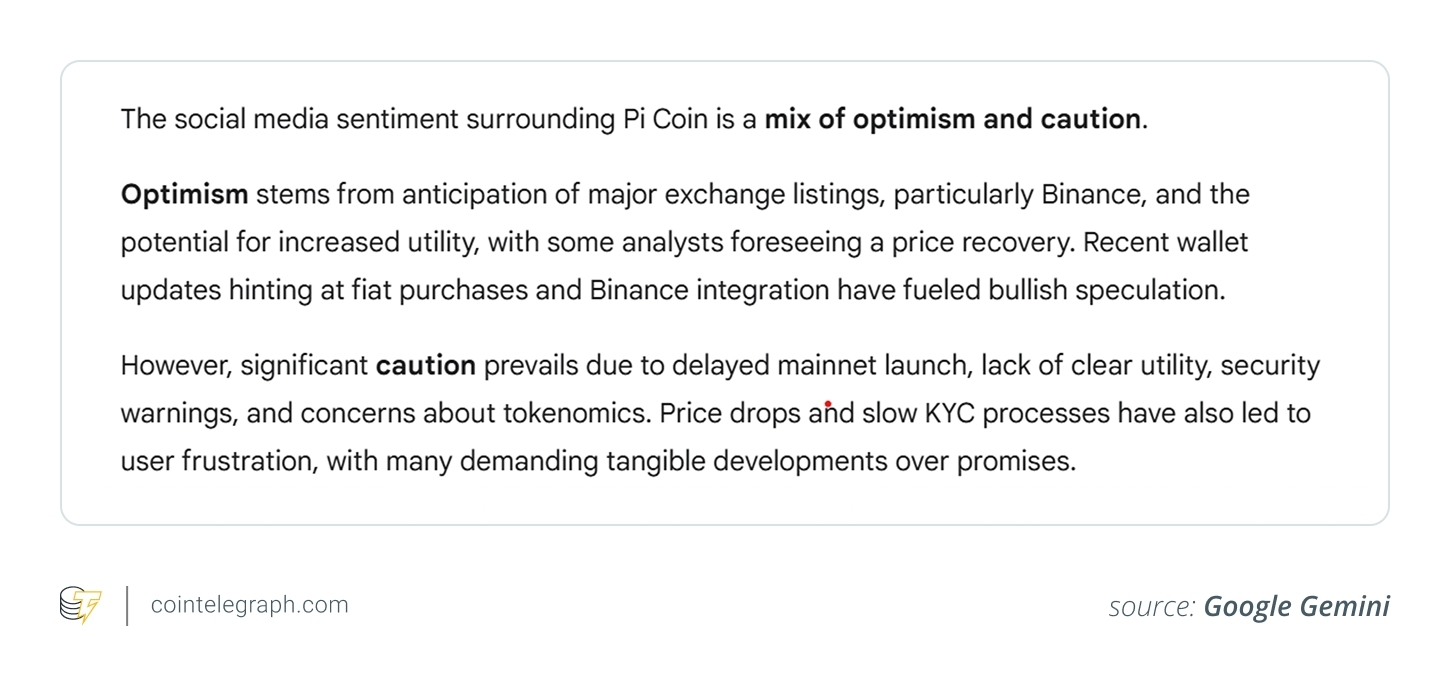 Example prompt: “Analyze social media sentiment surrounding the Pi Coin. Is the community generally optimistic or cautious?”