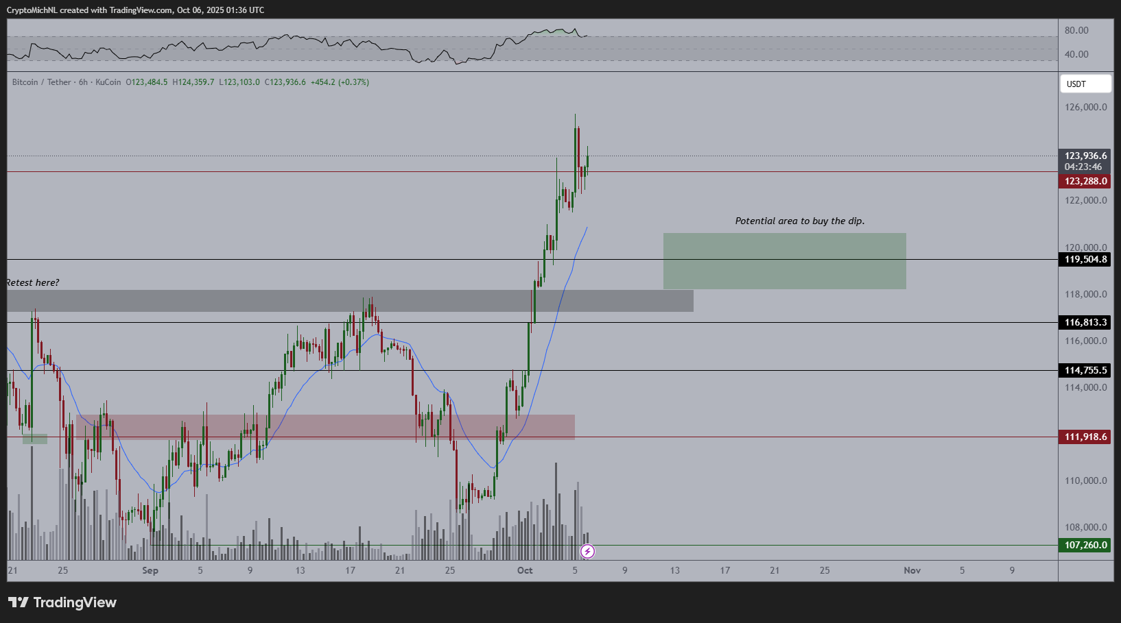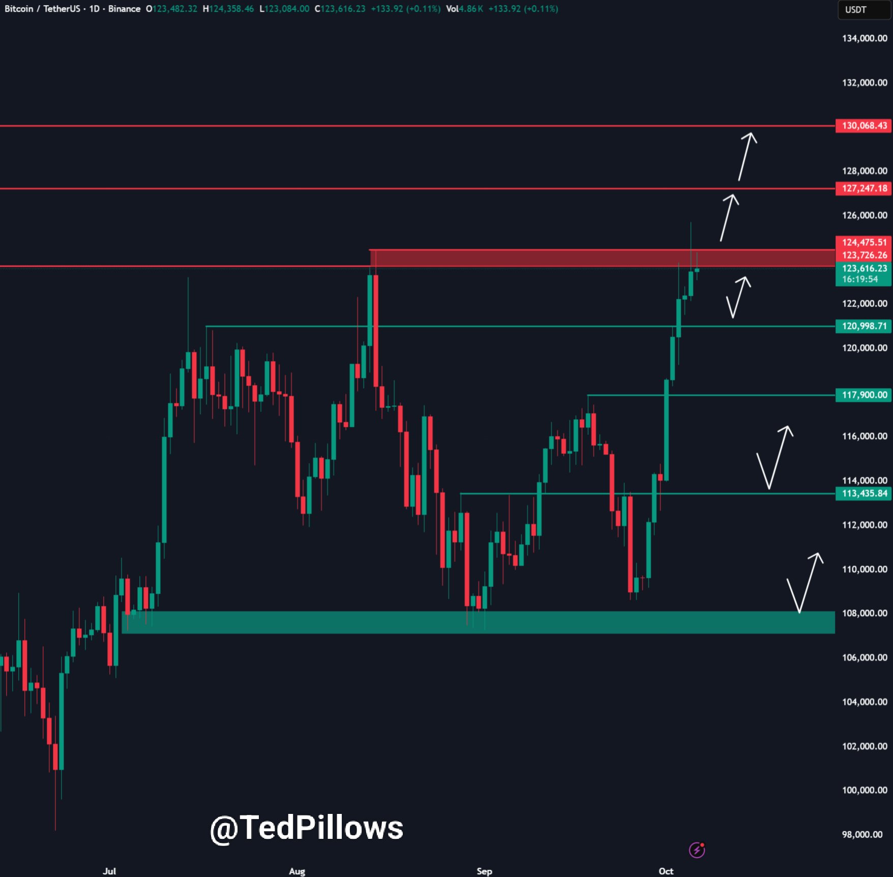 “Bitcoin needs to prove this $124k resistance is a weakening point of rejection. And any shallower dip or pullback from here would do just that.”