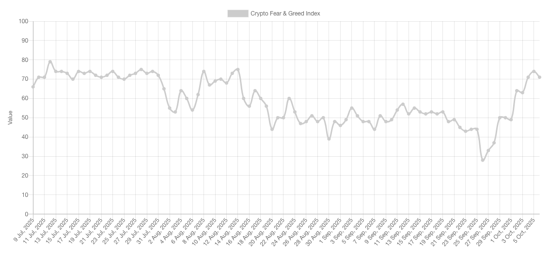 The latest readings from the Crypto Fear & Greed Index show that while “greed” now dominates, excessive emotions have not yet entered the market.