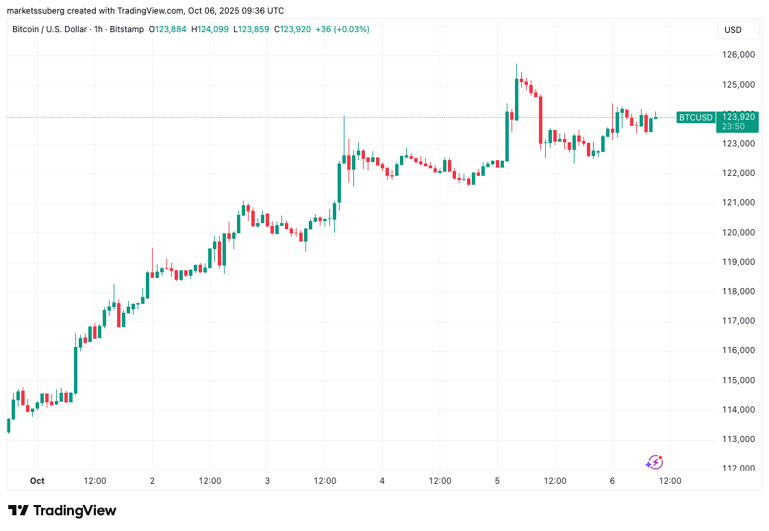 Data from Cointelegraph Markets Pro and TradingView shows that BTC/USD is trading around $124,000.