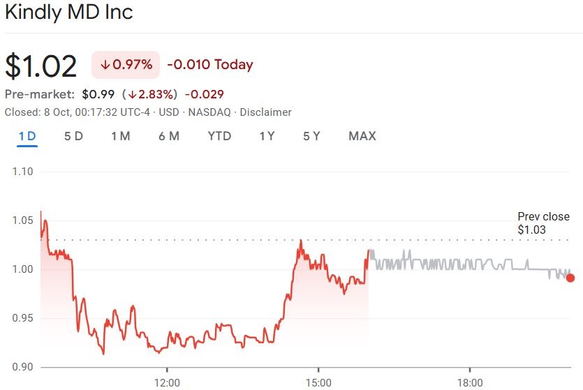 Kindly MD (NAKA) saw a 0.97% drop on the day and shed an additional 2.83% to trade at $0.99 in after-hours trading.