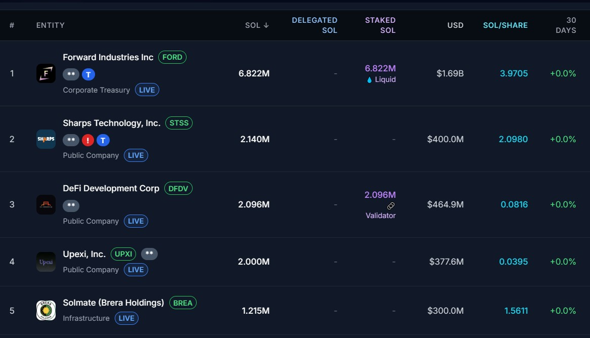 Forward Industries currently holds the largest Solana-based crypto treasury, valued at over $1.6 billion. The company is backed by crypto giants Galaxy Digital, Jump Crypto and Multicoin Capital, and plans to be more involved in the network’s ecosystem.